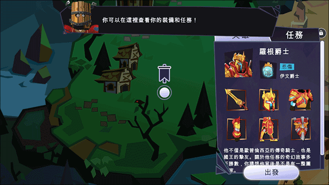7、接下来,在大地图中根据提示选择需要出战的地点,选择并点击“出发”的选项;