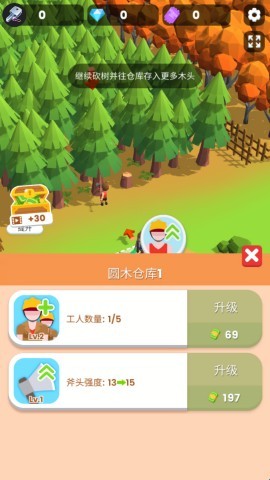 4、独特的点击伐木玩法,轻松有趣的节奏,让玩家体验全新的伐木旅程。