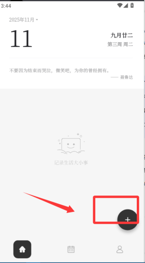 1、先下载凡事日记安卓版并打开,点击新建按钮开始撰写今天的日记或心情记录。