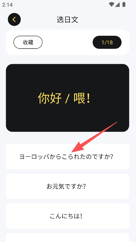 2、切换至选日文模块,从选项中选出正确日文完成练习。