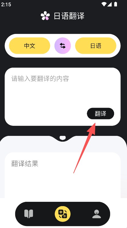 3、进入翻译模块,输入文本点击翻译,获取中日互译结果。